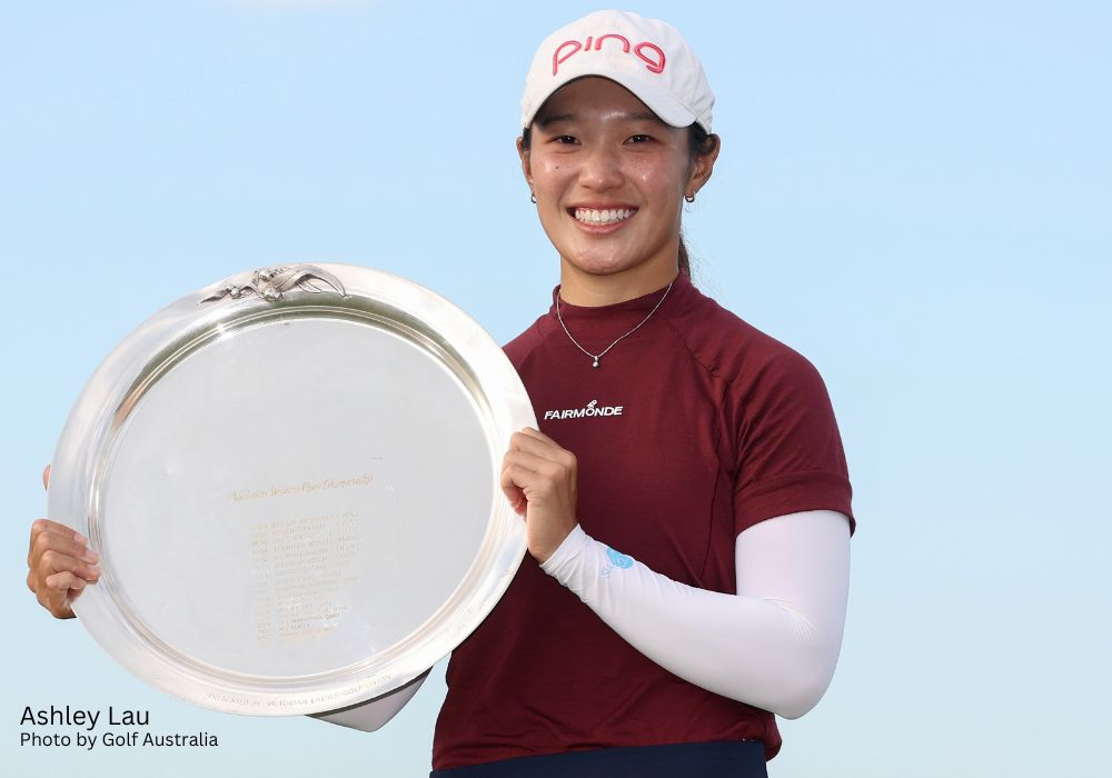 Ashley Lau celebrating her first professional win at the Vic Open.