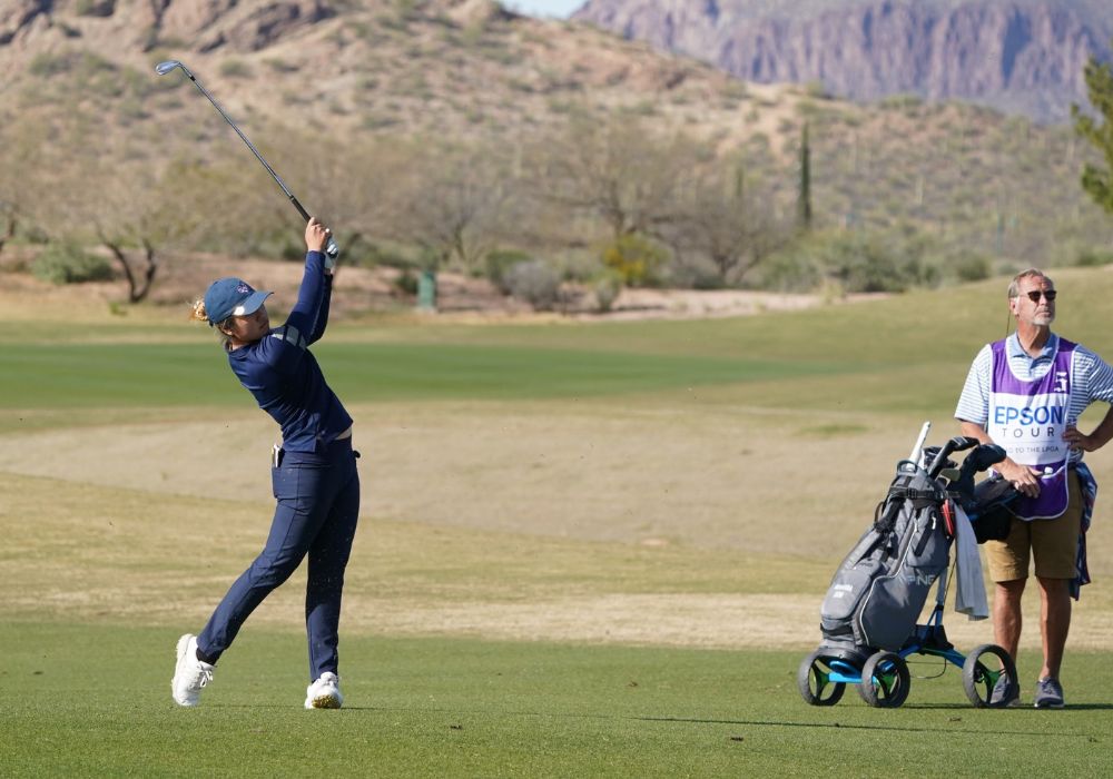 Natasha Oon getting into the swing of things on the Epson Tour.