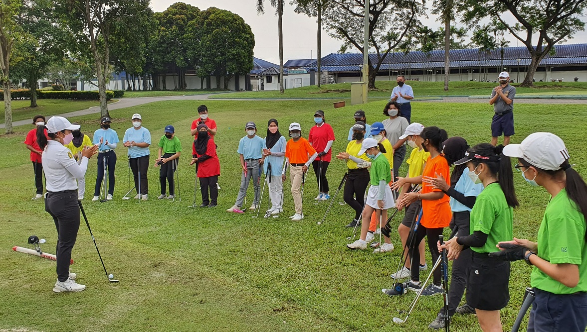 Rising Malaysian pro Alyaa Abdulghany shares tips and insights with juniors in Malaysian Golf Association clinic at Glenmarie